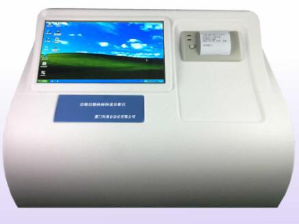 名称:豪华型动物疫病快速诊断仪 型号:KH-XM096H 一、仪器介绍 KH-XM096H豪华型动物疫病快速诊断仪广泛适用于动物疫病检测、畜禽养殖、水产养殖、水产品质量监督检验部门等可进行动物疫病快速诊断,包括但不仅限于2008年《中华人民共和国动物防疫法》《一、二、三类动物疫病病种名录》规定管理的动物疫病,一类 动物疫病(17种)、二类 动物疫病(77种)、三类 动物疫病(63种)如猪蓝耳病毒、猪瘟病毒、猪伪狂犬病毒、猪伪狂犬病毒gE蛋白、猪圆环病毒、猪乙型脑炎病毒、猪口蹄疫3ABC蛋白、猪口蹄疫病毒IgG、猪细小病毒、鸡禽流感、蓝舌病、白斑综合征、牛传染性胸膜肺炎、牛瘟、绵羊痘和山羊痘等定量快速检测,也可以检测抗生素类残留,适用于各种光度酶联试剂盒,并且可以和疫病诊断分析系统联网工作。 二、仪器主要技术指标 ※ 标准96孔,微孔板;可进行横向或纵向96孔可视化布板,自由编排对照、样本位,直观可靠 ※ 光路系统:9通道光纤测量系统,其中8路光源用于96孔板的同步测量,另外一道光路用于校准光源,作光源系统的补偿及光源工作情况的监测 ※ 光源:卤素灯,采用光源自动开关节能设计,最大限度延长光源寿命 ※ 滤光片标准配置:405nm、450nm、492nm、630nm ※ 波长范围:400 nm-800 nm ※ 测量范围:0-4.000 Abs ※ 波长准确度:±1% ※ 分辨率:0.001Abs(显示),0.0001Abs(计算) ※ 精确度:±0.5%或0.005Abs ※ 稳定性:≤±0.005Abs/10 min ※ 重复性:≤0.001 ※ 报告打印:内置热敏打印机,并可外接打印机 ※ 接口: USB接口2个和RS232接口,VGA输出口。 ※ 电源:AC110-220V, 50/60Hz ※ 处理器:嵌入式高速处理器 ※ 存储量:超大硬盘存储,可存储上亿组以上测试结果 ※ 振板功能:快速混匀孔内液体,便于准确测量 ※ 固化常见检测项目,可自动计算浓度值,无需二次换算数据处理 ※ 具有查询、打印、汇总等功能,可直接输出检测结果,软件终身免费升级 ※ 采用工业计算机系统,配置AMD LX800 CPU,大容量硬盘,8G内存。可以存储几十万组数据,安装中文嵌入式Windows XPE操作系统,人机界面操作方便。可以安装所有支持Windows XP操作系统的软件,如微软office办公软件、SQLSERVER数据库管理系统,支持强大的数据库管理模式。10寸1024×768 TFT高亮度彩色液晶触摸屏操作,配备鼠标、键盘操作简捷方便。支持数据远程智能发送.仪器可以存储200个检测程序、定标参数定标曲线及105组整板检测数据。 ※ 操作流程简洁:无需外接电脑,仪器本身可实现只需点击检测项目,无须编程直接进入测试状态,并能直接 自动计算浓度